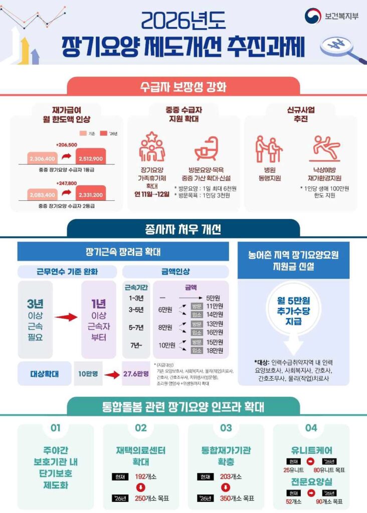 이번 결정으로 수급자 보장성 및 종사자 처우가 강화되며, 통합돌봄 체계와 장기요양 서비스 인프라가 확대될 예정.