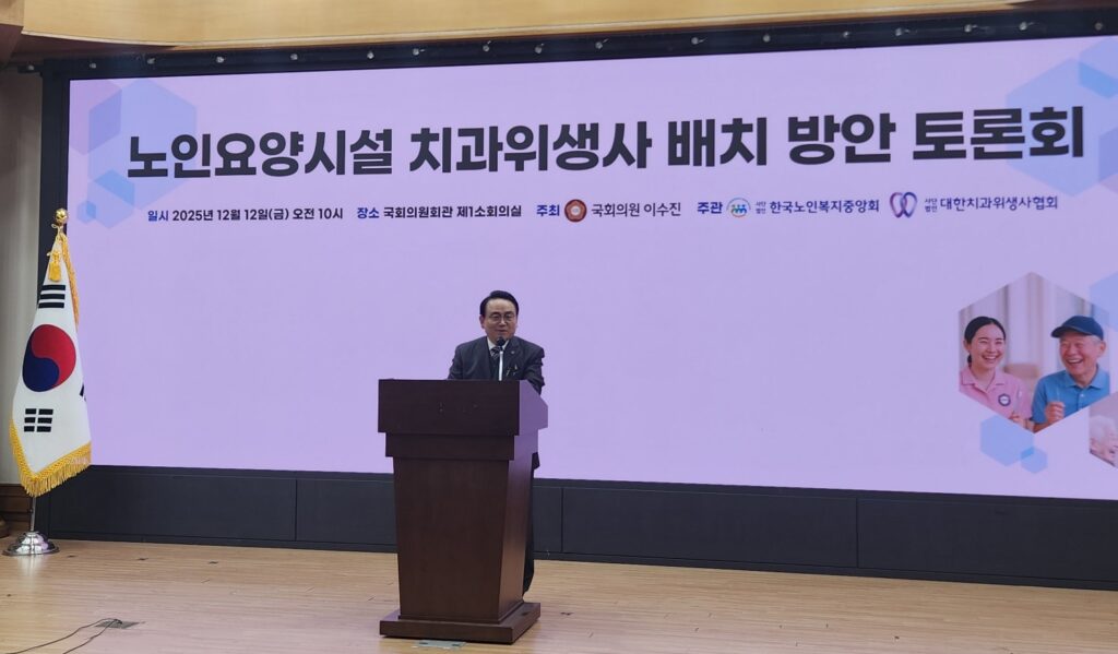지난 12월 12일 국회의원회관에서 더불어민주당 이수진 국회의원(보건복지위원회 간사)이 주최하고 한국노인복지중앙회와 대한치과위생사협회가 공동 주관한 ‘노인요양시설 치과위생사 배치 방안 토론회’가 개최되었다. 토론회에서는 요양시설 입소 어르신의 구강건강이 건강수명 연장과 흡인성 폐렴 예방에 중요한 역할을 한다는 점을 논의하며, 제도적인 인력 배치의 필요성을 강조했다.
